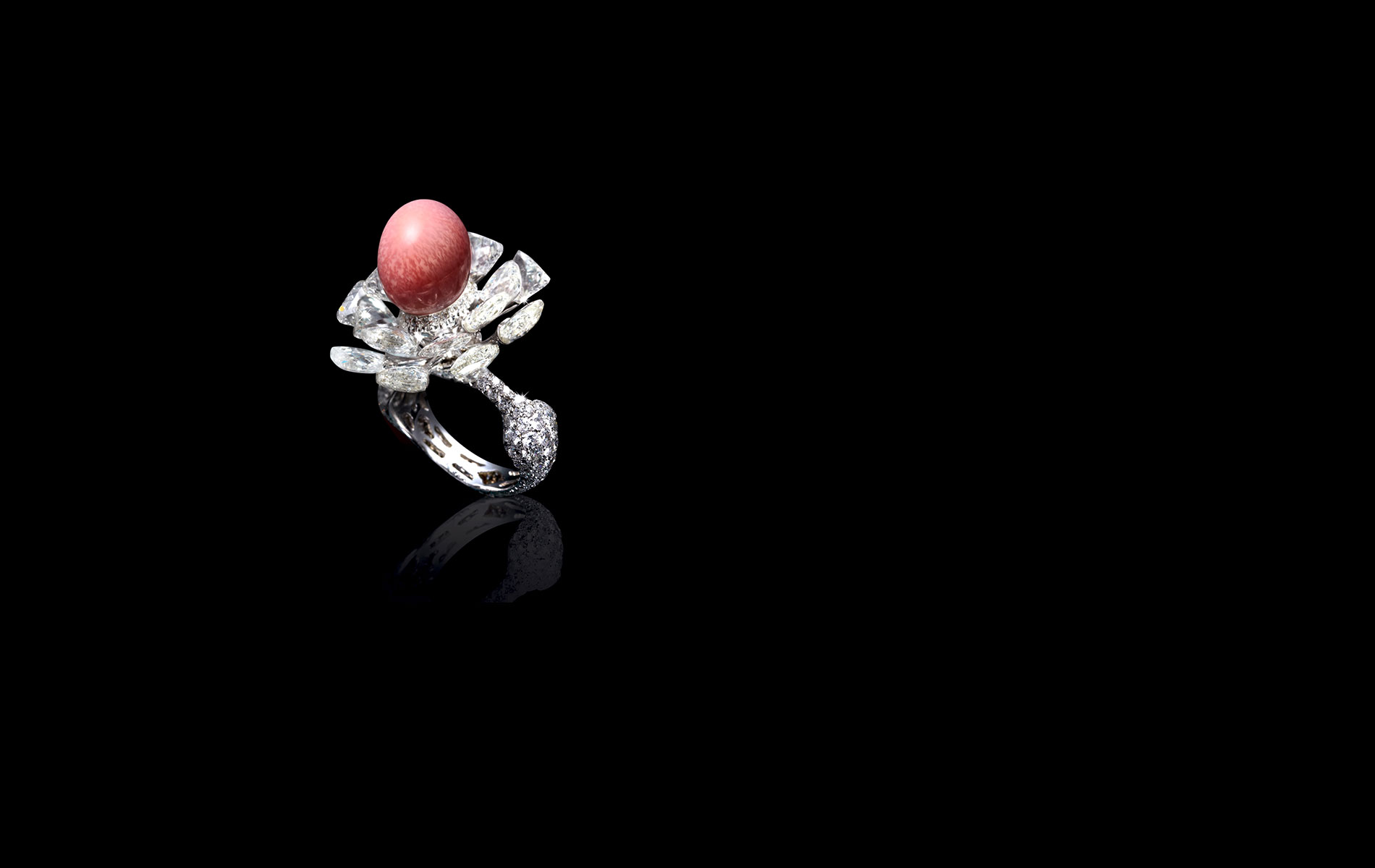 Set with Conch Pearl 11.21cts, Triangular Cut Diamonds 12.04cts, Round Diamond 2.74cts mounted in 18K White Gold