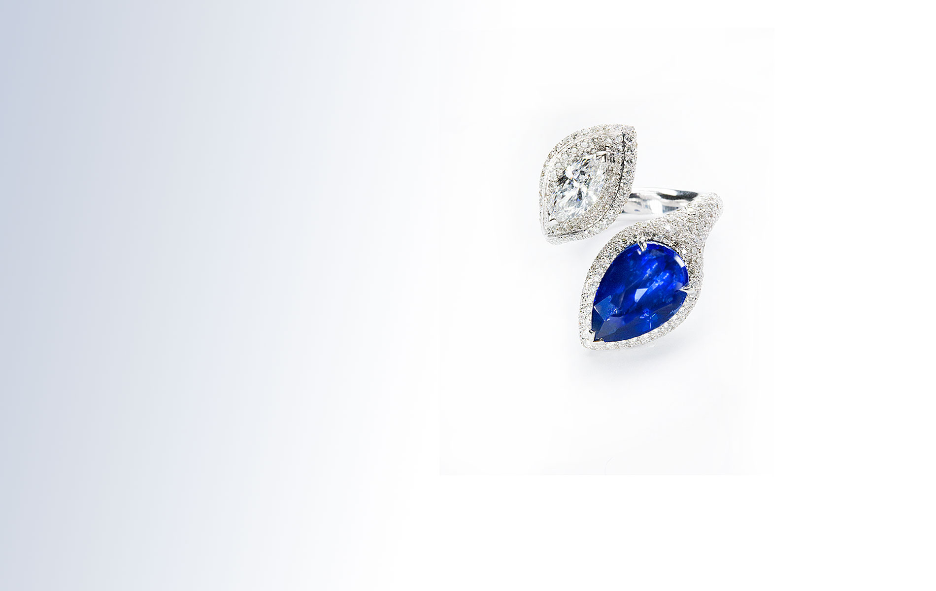 Set with Natural Sapphire 8.88cts, Marquise Diamond 1.21cts, Diamond 2.69cts mounted in 18K White Gold